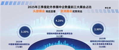 此次报告分析显示,2025年三季度中企赴外参展呈现出市场多元化、行业聚焦优势领域、区域活力差异明显的特点。