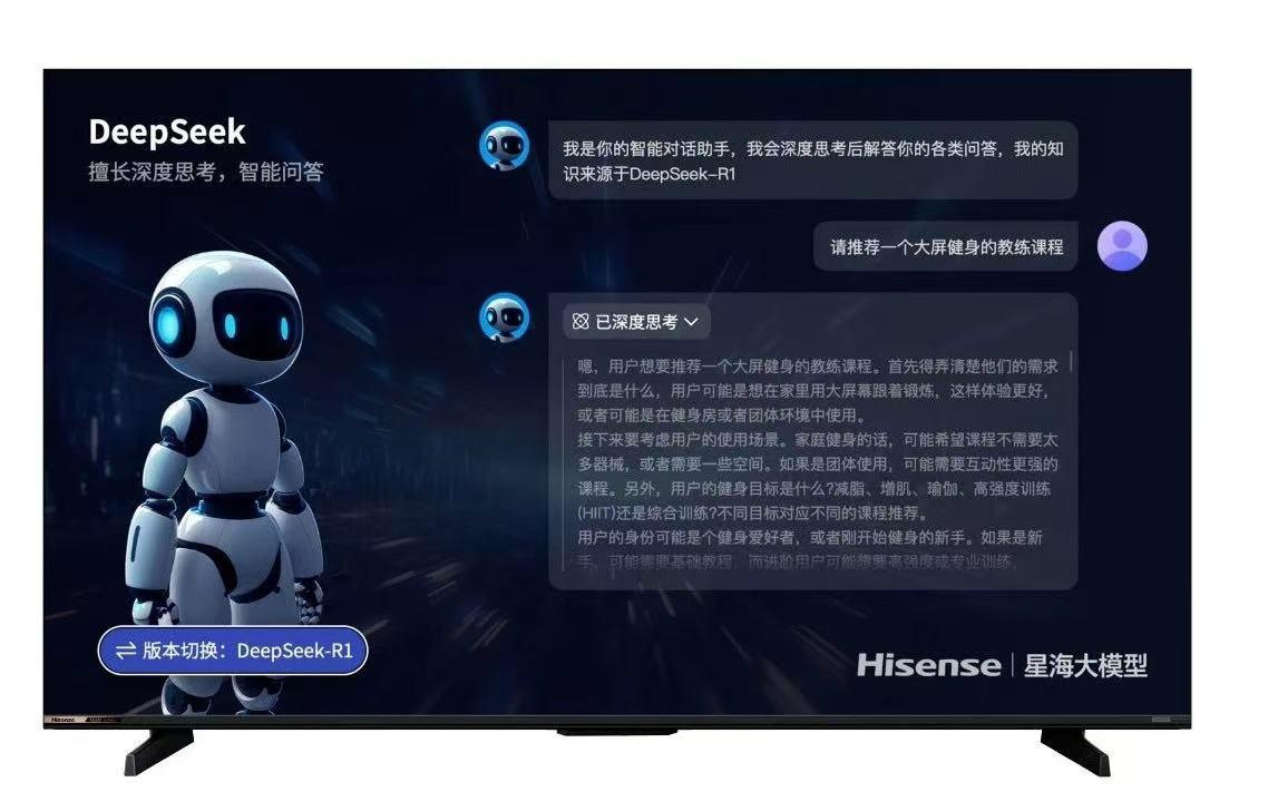2025开年,最火的除了票房超百亿的《哪吒2》,就是引发整个科技圈大地震的DeepSeek。放眼电视行业,2月11日,海信电视宣布其全系智能电视正式接入DeepSeek深度思考模型,并支持“满血R1”与“V3”双版本自由切换,这意味着其成为了行业首个搭载深度思考智能体的电视品牌。
