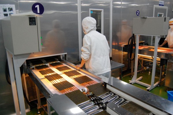 走进蓝润集团的海苔加工车间,5条智能化海苔加工生产线正火力全开。一张张初加工的海苔原料,在经过筛选、烘烤、调味、除湿、包装等精细工序后,摇身一变成为日料中常见的寿司海苔。智能化生产工艺不仅极大提升了烤海苔的生产效率,更从源头保障了产品质量与安全。同时,在海关的悉心指导下,蓝润集团建立起完善的食品安全保证体系,打造从原辅料到产品的全链条质量安全监管防线,让每一片出海的海苔都品质过硬。