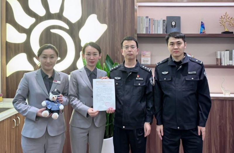 某日午间,一位男士至招行新华广场支行柜面办理取现48000元。柜员和运营经理在依照流程礼貌询问的过程中,敏锐地察觉到客户的说辞存在诸多不合理之处,交易行为明显异常,果断在警银群里进行了报告。很快,警官便打来电话,告知客户需要前往反诈中心进行备案,随即对客户进行了劝退。次日,支行接到反诈中心电话,被告知该账户确实涉案,已被异地公安机关依法冻结。两名警官专程来到支行,他们专程送来表扬信,还带来了可爱的反诈小熊玩偶作为奖励,对支行积极配合反诈工作的态度和行动给予充分肯定和衷心感谢。