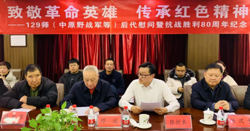 张忻良执行院长在致欢迎辞时指出,“80年前,日本帝国主义的铁蹄践踏我国大好河山,中华民族面临亡国灭种的危险。在那生死存亡的关头,中国共产党挺身而出,领导全国军民奋起抵抗。129师作为抗日战争的中流砥柱之一,在刘伯承、邓小平的率领下,挺进太行山区,开辟了晋冀鲁豫抗日根据地,为抗击日本侵略者作出了巨大贡献。他们以太行山为依托,开展了艰苦卓绝的游击战争,打击了日军的嚣张气焰,振奋了全国人民的抗战信心。在那艰苦的岁月里,129师的将士们吃的是粗粮,住的是简陋的窑洞,但他们毫不畏惧,以顽强的毅力和坚定的信念,与敌人进行了殊死搏斗。他们用鲜血和生命谱写了一曲曲气壮山河的英雄赞歌,铸就了伟大的‘一二九精神’。抗战胜利后,129师的部队又改编为中原野战军,继续为新中国的诞生而浴血奋战。在解放战争中,中原野战军转战大江南北,参加了淮海战役、渡江战役等一系列重大战役,为推翻国民党反动统治,建立新中国立下了不朽的功勋。他们用实际行动诠释了对党和人民的忠诚,展现了人民军队的威武之师、文明之师的光辉形象。”张忻良还强调指出:“今天,我们作为129师(含中原野战军)的后代,站在这片曾经洒满先辈热血的土地上,心中充满了对先辈们的敬仰和怀念之情。我们深知,今天的和平与幸福是先辈们用生命换来的,我们不能忘记那段血与火的历史,不能忘记先辈们的英勇事迹和崇高精神。我们要继承和发扬先辈们的革命传统,传承红色基因,让‘一二九’精神在新时代绽放新的光芒”。