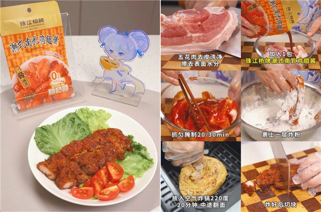 在传统观念中,女性特有的细腻与智慧,让厨房成为女性专属战场,荤素搭配的营养健康,火候的精准掌控,分毫不差的调味,铸就了烹饪领域难以逾越的“壁垒”。现代厨具和珠江桥牌结合,正在打破传统厨房的“壁垒”。比如空气炸锅通过热风循环技术,将油炸食品的脂肪含量降低80%,不仅健康还降低了对烹饪者的火候掌控要求,珠江桥牌一酱成菜则以标准化配方消解了调味门槛。共同构建了"零经验"也能烹饪米其林级菜肴。