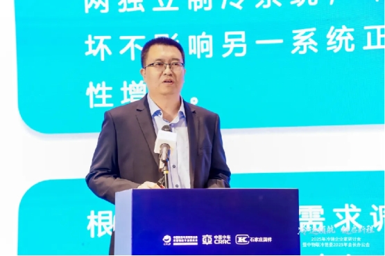 中车石家庄车辆有限公司冷链事业部副总经理武鑫带来中车智慧冷链产品及解决方案、行业创新实践与经验分享。武鑫表示,通过技术创新与模式革新,冷链物流行业正逐步实现低碳转型与数智化提升。他介绍了蓄冷技术、冷能转移技术、冷量生态网络及冷量金融等创新技术,这些技术不仅优化了冷链物流的能效,降低了运营成本,还减少了碳排放,推动了行业的绿色发展。同时,他表示,将围绕“装备+服务+数据”的综合发展定位,致力于打造智慧化综合服务体系,携手共建冷链智慧生态圈,以高铁级的可靠与温度,呵护每一份价值。