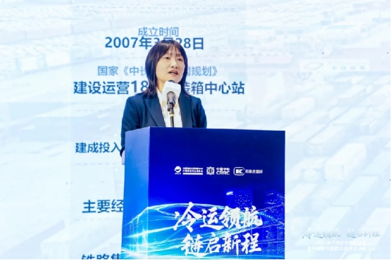 中铁联合国际集装箱有限公司市场营销部部长助理赵莉结合中铁联集站间班列及冷链技术创新实践案例展开分享。赵莉表示,中铁联集公司作为中国铁路第一家中外合资企业,凭借覆盖全国主要经济中心和物流枢纽的集装箱中心站和铁路集装箱运输骨干网络,2024年实现了659万TEU的集装箱办理量,稳定开行中欧(中亚)班列、西部陆海新通道班列、中老国际货运列车等多种班列服务。公司不仅提供铁路货运、场站服务、物流服务、冷藏箱服务等多元化产品,还通过创新示范工程,如“云花出滇”全程冷链多式联运,推动了冷链技术装备、信息互联共享等方面的创新,显著提升了综合经济效益。此外,中铁联集还积极拓展国际班列的服务配套设施合作,如在中老铁路的应用和服务配套方面取得重要进展,未来将携手行业企业,共同打造高品质的中心站铁路网点和站间班列产品体系。