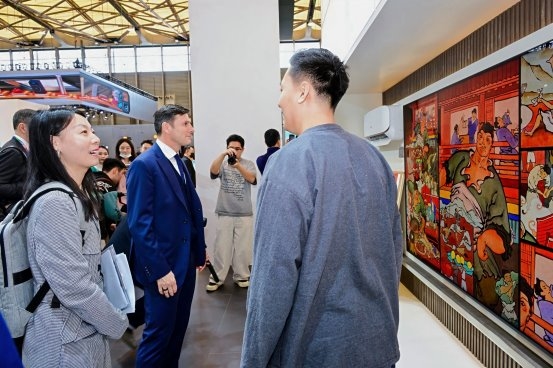 不仅国内用户对于璀璨的设计、审美产生了浓烈的归属感,其在国际市场上的影响力也在逐步展现。展会期间,国际足联传奇球星萨内蒂也被璀璨展台独特的设计吸引,现场不仅体验了融和套系各场景,并与璀璨邀请到场分享的知名画家陈汉煜针对东方文化以及美学进行了深度交流,陈汉煜向萨内蒂展示了基于清明上河图创作的绘画作品,给予高度评价,点赞东方美学。这些来自于不同领域知名人士的跨界认可,更印证了璀璨“科技为骨、文化为魂”的产品哲学。