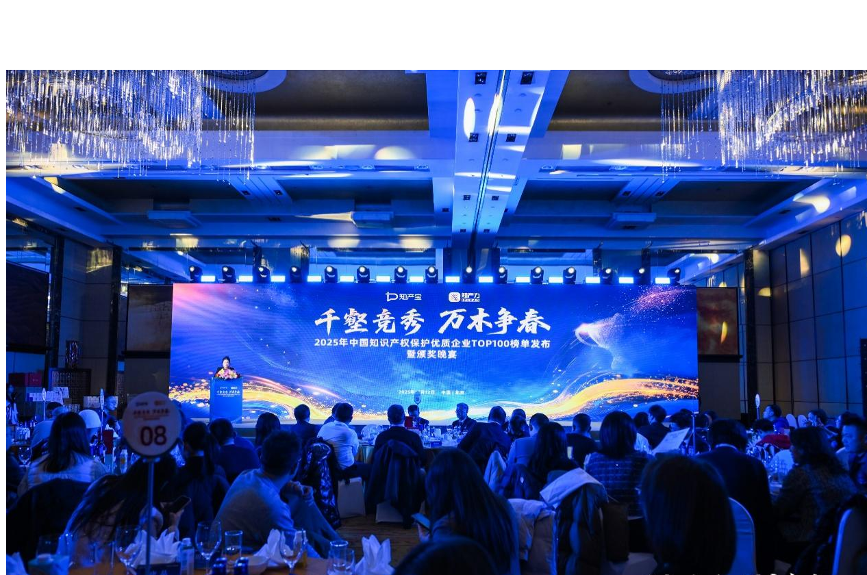 12月12日,由国内领先的知识产权数据与服务平台知产宝及知产领域专业媒体知产力联合主办的“中国知识产权保护优质企业Top 100”榜单发布活动暨颁奖晚宴在北京举办。本次活动以“表彰优秀企业,赋能行业发展”为核心,汇聚知识产权专家、企业知识产权负责人、律师精英及行业领军人物等百余位嘉宾,共同见证中国知识产权保护领域年度标杆企业的揭晓。