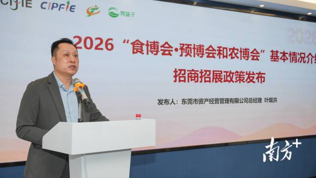 叶琨洪表示,2026食博会·预博会和农博会将于4月10日至12日,在东莞厚街广东现代国际展览中心联动举办。本届展会以“食全食美,预见‘味’来”为主题,围绕“品牌化、专业化、国际化、数字化、市场化”办展方向,致力于构建覆盖农业生产、食品加工、流通贸易、消费体验的全产业链服务平台。