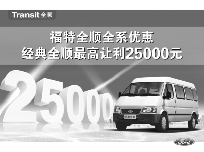 日前,福特全顺“真金回馈”大型让利促销活动在全国范围内火热展开,经典全顺最高优惠25000元的让利幅度,为商用车市场树立起高性价比标杆。同时,北京、广州地区的轻客老用户在换车时,更可获得大额现金补贴。