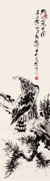 明涛从事指画研习几十年,中国画坛的前贤朱耷、石涛、高其佩、李承喆、潘天寿、李苦禅、崔子范,都是他顶礼膜拜的偶像。近十年来,他又泛及金农、虚谷、蒲华、青藤诸前辈,吸取青藤的奇崛纵逸,朱耷的简约空灵,虚谷的枯涩冷峭,蒲华的粗放狂野,融会贯通于其画中,从而形成既有前贤影响,又能别出新意、独特的、具有鲜明个性的大写意花鸟画风格。