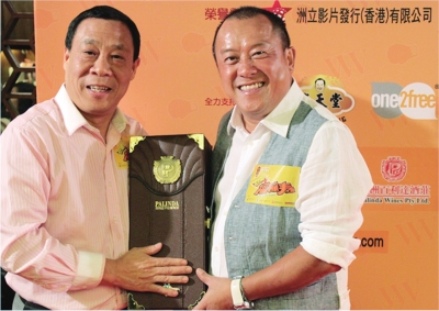 澳洲百利达酒庄董事长黄特平(左)与香港影视演员曾志伟合影 |