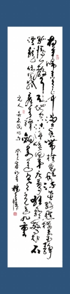 只说说杨在葆草书的一个“出乎我意料”吧。在我的想象中,他的草书风格应该是汹涌澎湃、肆无忌惮的,这才与他的银幕形象相匹配。事实上,他的草书却有着一种柔中带刚的气韵。以我的艺术经验,大开大合、天马行空、唯我独尊固然是难得的艺术境界,似乎只有这样才算是由艺术的必然王国到达了艺术的自由王国,其实,到达了这个境界后,只有知道收,只有知道含敛,才可能触摸到艺术的至高境界。打个腐朽和粗俗的比方,这便是将帅与帝王的区别,这便是嚣张的打手与深沉的黑老大的差异。依杨在葆的性格气质,他的草书本应该给人以不屑一顾、生猛刚硬、狂妄自大的感觉。事实恰恰相反,我反倒从他行云流水般的作品中,看到了实实在在的严谨、细腻、谦卑、敬畏、悲悯……我想这样的风格不仅与杨在葆的表面性格相悖,同时也与这个浮华时代相悖,但这又体现了人性深层的光芒,是人类文明的永恒追求。