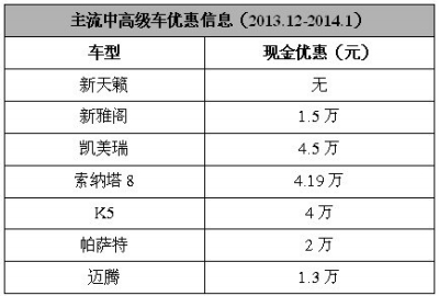 众所周知,中高级车市场随着竞争日趋“白热化”,众多主流车型都已按捺不住,以“降价”吸引消费者眼球,增强竞争力。从目前市场上各车型的终端价格来看,凯美瑞、索纳塔8、K5等车型的终端让利已超过4万元,新雅阁上市当天终端价格就降了5000元,目前现金优惠已达1.5万元;就连一向不加入“价格战”的新帕萨特、迈腾,现金优惠幅度也达到1万~2万元。