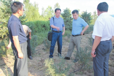 邢国良(右三)一行深入沙棘种植基地调研 |
