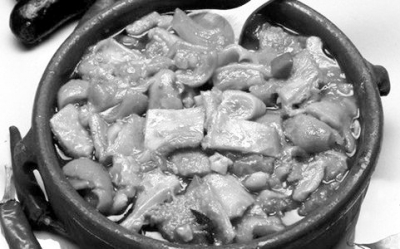 马德里烩菜 在马德里的诸多菜肴中,最值得一提的当属马德里烩菜,又叫马德里肉汤(CocidoMadrileno)。这是一种用火将豌豆、红萝卜、芹菜、土豆等蔬菜与牛肉、猪肉等杂肉一同焖煮而成的多汁菜肴,不仅味道鲜美,而且营养价值颇高。这道菜烧制起来较为简单,只需将所有的菜都扔进锅里就是了,也是“懒人食品”的一种。 |