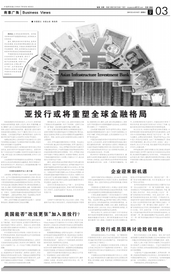 亚投行或将重塑全球金融格局