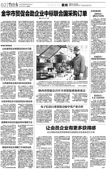 安博公司此次一举中标高额订单,对贸促工作和企业参与都有很大的鼓舞作用。随后,苏州、南通、临沂等地贸促会专程来金华考察联合国采购平台,学习参与联合国采购的方法与经验。