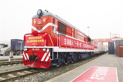 2月8日,“攀枝花早春蔬菜出口俄罗斯首发班列”从成都国际铁路港驶出,这批蔬菜搭乘中欧班列(蓉欧快铁)将途经二连浩特口岸出境,并在12天后抵达莫斯科。本次首发班列由15个货柜组成,共160余吨,主要包括彩椒、西红柿等有机绿色蔬菜。这批蔬菜全部为攀枝花地区的当季蔬菜,将通过莫斯科农产品进出口销售公司进入莫斯科欧尚、莲塔和OK等超市,让莫斯科市民品味来自遥远攀枝花的“早春味道”。 中新社发 钟欣 摄