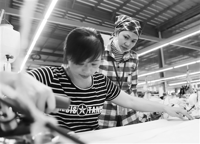 近年来,江苏省海安县纺织业主动响应国家“一带一路”倡议,加快推进行业上下游资源的整合,在产业链进行全球深度布局,从产品的“走出去”到技术输出,先后在“一带一路”沿线国家投资棉纺、服装等产业,实现纺织产业持续高质量的发展。图为在由江苏省海安县联发制衣公司在柬埔寨投资的服装车间内,中国籍技术人员正在培训柬埔寨籍员工。