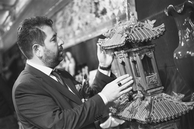 近日,“华北瓷都”山西阳城举办第二届陶瓷博览交易会,40余国家和地区逾万人参会。来自印度、俄罗斯、乌兹别克斯坦等国家的专家、学者、参展商和采购商齐聚千年瓷都阳城,共话陶瓷发展。图为外国客商鉴赏陶瓷制品。