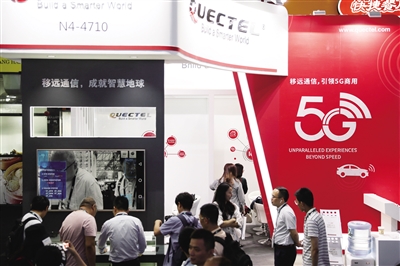 6月11日至13日,2019亚洲消费电子展在上海举行。本届展会共吸引国内外500多家展商呈现包括5G、人工智能、增强现实、无人驾驶等相关领域的全球顶尖科技。图为5G通信将成为串联各个行业的基础。 中新社记者 张亨伟 摄