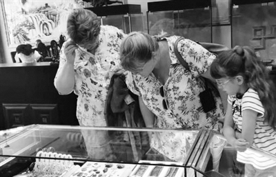 位于黑龙江省东南部的东宁市,居中俄朝三国交界地带中心,是中国批准建设的第一个北方沿边金伯利口岸和宝玉石专业口岸。2012年以来,东宁市连续举办七届宝玉石交易会,累计有来自俄罗斯和中国18个省市区及港澳台地区的500余家企业参展,销售额突破30亿元。图为外国游客在中国·东宁2019中俄文化节暨铬透辉石交易会上选购俄罗斯宝玉石。 姜辉 摄