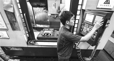 近年来,河北省安平县以提升丝网机械设备制造水平为核心,不断创新发展模式,提高自主研发能力,产品获得多项国家技术专利。目前,该县高端丝网机械制造企业达60多家,已发展成为集研发、设计、制造、销售、服务于一体的高端丝网机械制造产业群,产品远销海外。图为当地一家丝网机械制造企业的工人在操控数控机床加工机械零件。