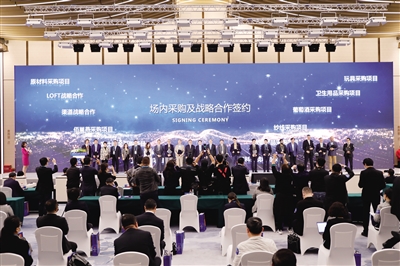 东方国际集团作为上海市最大的综合贸易型国有企业,其在进博会场内举办 “新模式、新进口、新消费”发布与签约活动,引起社会的高度重视。上海市副市长宗明出席并致辞。市政府副秘书长尚玉英、中国国际进口博览局副局长刘福学、市商务委主任华源、市卫健委党组书记章雄及市国资委、东方国际集团、长宁区、中国联通上海市分公司、海关等单位负责人出席发布与签约活动。新品集中首发,进行 25 个采购及战略项目的现场签约,签约金额达15 亿人民币,签约项目和采购规模均超过上一届。会上还进行了第四届进博会全球直采食品及农产品、消费品和装备展位海外展商集中签约,确认了 10 家展商,共计 1500 平方米左右的第四届参展意向。