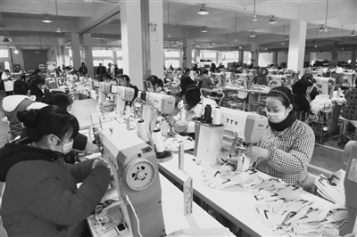 春节过后,广西灵川县众多企业随着员工陆续到位,全力推动节后复工复产,生产车间内一片繁忙。图为在灵川县定江镇,一家企业的员工在制鞋车间工作。 新华社记者 陆波岸 摄