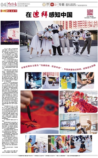 中国馆精彩的灯光秀、无人机表演、北斗、高铁、汉字墙都成为世博“打卡”热地,每周的太极武术等特色演出吸引各国观众驻足观看、参与其中;农历春节期间写春联、剪窗花等活动送来和谐、喜庆浓浓年味儿,北京冬奥会的冰墩墩、雪容融在中国馆广受观众喜爱,“为迪拜带来了冰雪感受”;大熊猫主题展、“大象旅行团”生动展现了中国生态文明建设成果,备受游客喜爱……