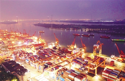 广东省广州市港口春节假期、元宵节不停工,多措并举增加运力,保障物流链稳定通畅,奋力冲刺“开门红”。图为广州市黄埔港灯火辉煌,一派繁忙的作业景象。