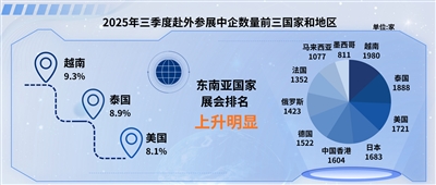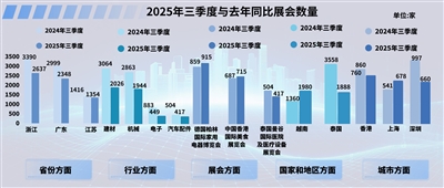 此次报告分析显示,2025年三季度中企赴外参展呈现出市场多元化、行业聚焦优势领域、区域活力差异明显的特点。