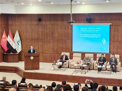 | 2025年2月25日,埃及开罗,2025年中埃贸易投资与清洁能源合作论坛暨第三届链博会推介会举行。图为中国贸促会副会长陈建安出席会议并致辞。 |