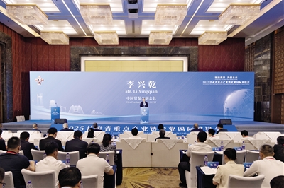 | 2025年7月16日,北京,在第三届链博会期间,甘肃省重点产业链企业国际对接会举行。图为中国贸促会副会长李兴乾出席会议并致辞。 |