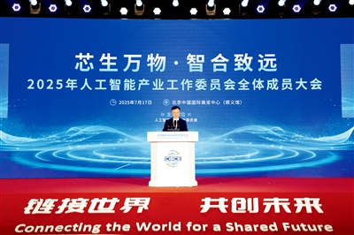 | 2025年7月17日,北京,第三届链博会期间,2025年人工智能产业工作委员会全体成员大会举行。图为中国贸促会副会长聂文慧出席会议并致辞。 |