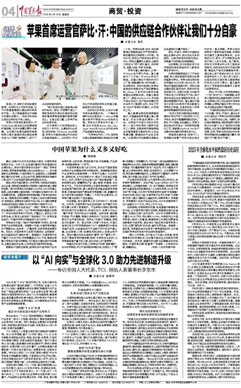 苹果首席运营官萨比·汗:中国的供应链合作伙伴让我们十分自豪