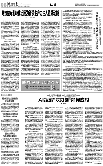 “专利如果只躺在实验室里,那就是空中楼阁,得让技术走出实验室,走进生产线,变成让老百姓看得见、摸得着、用得上的产品。”工业和信息化部科技司司长魏巍表示,知识产权不仅是保护创新的“护身符”,更是驱动发展的“金钥匙”。我们要用好这把钥匙,打开更多新质生产力的大门。