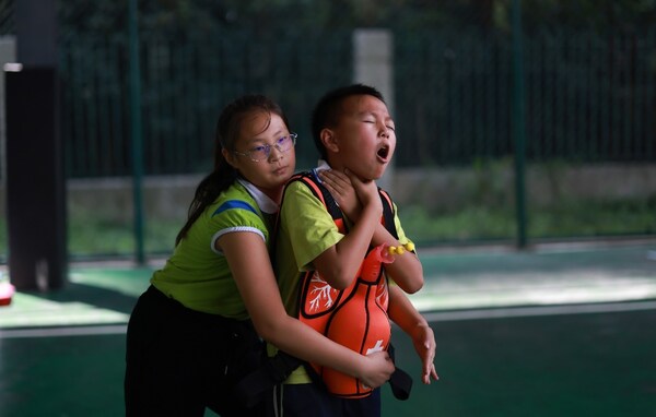 2023年5月,河北的一位小学生在放学后吃零食卡住喉咙,很快脸都憋红了,身边的同学想到在儿童平安生存训练营学习的腹部冲击法,没有迟疑,"上去咔咔一顿猛操作",帮同学吐出了异物。
