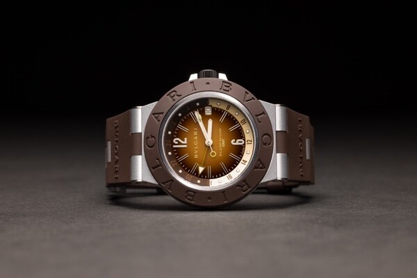 为了向传奇的 Stratocaster® 电吉他致敬,联名款 BVLGARI Aluminium GMT 腕表参考了这款标志性吉他的原版配色。复刻 Fender 标志性漆面的日落渐变色涂层和一比一还原的奶油白色调,为这款限量 1200 枚的腕表注入了灵魂。棕色橡胶表圈,深棕色代表夜晚、奶油白代表白昼的第二时区表盘,以及经过抛光处理的镀铑指针,让人不禁想到吉他的品丝,自然地将 BVLGARI Aluminium GMT 腕表和 Stratocaster® 电吉他联系在一起。表壳之下是产自瑞士的机械机芯,在世界上的每一个地方,都能做到精准计时。Bvlgari 宝格丽还为这款腕表重新设计了 Velcro 表带,佩戴者可以在演奏中放开动作,不必担心腕表松脱。带有 DLC 涂层的钛金属表背刻着"Fender®"标识,表明无论日夜更替,音乐在全球范围内都拥有凝聚人心、引起共鸣的惊人力量。