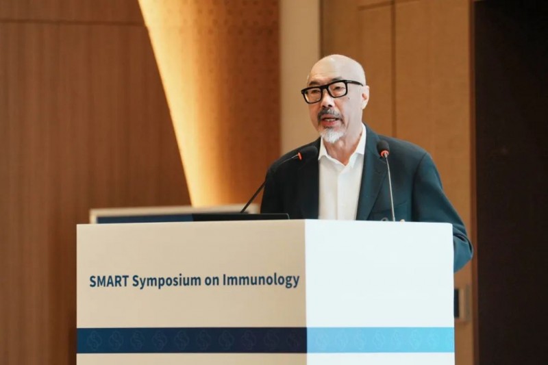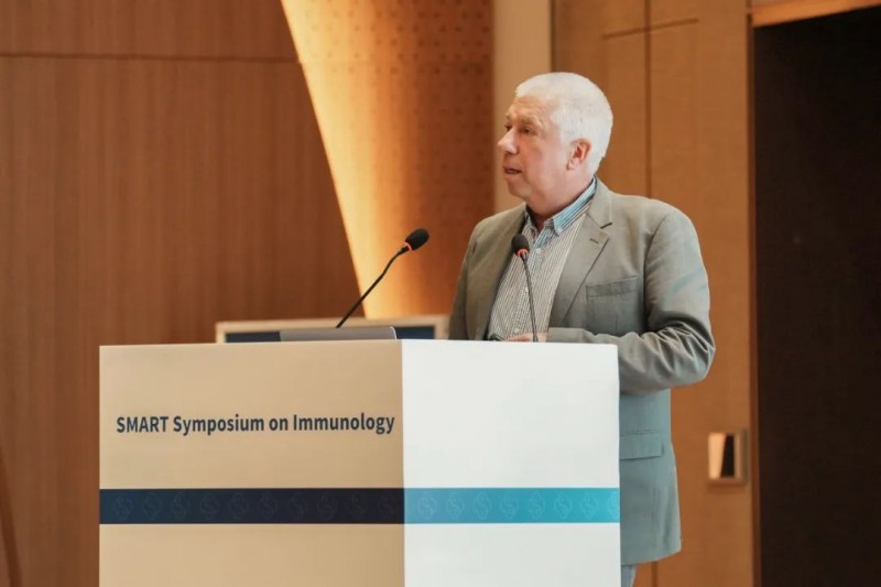本次会议最后一个专题是“精准治疗(Precision therapies)”。首先,来自华盛顿大学的Jonathan Kipnis重点介绍了神经疾病中抗原特异的T细胞发挥的功能和分子机制,提出了利用T细胞疗法治疗神经退行性疾病的思路。随后,来自海军军医大学的Huji Xu系统性介绍了通用型CAR-T疗法在自身免疫病中的探索和应用,为治疗自身免疫病提供了新的视角和思路。来自默克的Lisa Butterfield介绍了在黑色素瘤中肿瘤疫苗及T细胞响应的工作。 最后,本次会议的第四位主旨讲者,来自多伦多大学的Tak Mak以精彩报告将会议推向高潮。Tak Mak首先介绍了团队在T细胞受体、免疫检查点、靶向肿瘤代谢等领域的开创性工作;而后他集中介绍了团队在神经免疫学领域的工作,揭示了在病原体感染、肿瘤及机体稳态下那些可以合成乙酰胆碱的T细胞的重要功能。他还介绍了分泌乙酰胆碱的B细胞在肝再生中所发挥的至关重要的作用。他的工作揭示了免疫细胞通过表达神经递质在疾病及健康稳态下行使的各种功能,代表了神经免疫学一个重要方向。