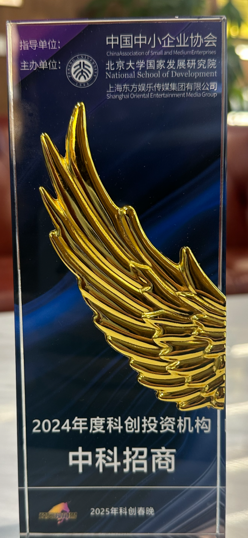 鉴于中科招商20多年来,一直对中国科创企业的投资赋能支持,尤其是近几年投资扶持的科创企业IPO数量在国内同行处于领先水平,中科招商和红衫资本、赛富资本等几个知名投资机构被上海东方卫视与北京大学国发院联合举办的2025年科创春晚上评为:2024度科创投资机构。