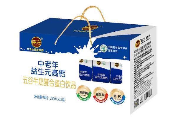 江西南方食养集团科技有限公司(以下简称“南方食养集团”),根据中老年人群喝纯牛奶,但普遍有乳糖不适应症、需补钙等痛点,利用黑芝麻等五谷植物基原料为载体,应用无氧微米级研磨技术和UHT灭菌技术,研发出无蔗糖中老年高钙奶系列蛋白饮品包括中老年高钙、益生元高钙、黑芝麻核桃、多维高钙、眠享、红枣枸杞、富硒高钙、益生菌斑兰牛奶等。产品自上市以来,深受消费者喜爱,畅销市场。