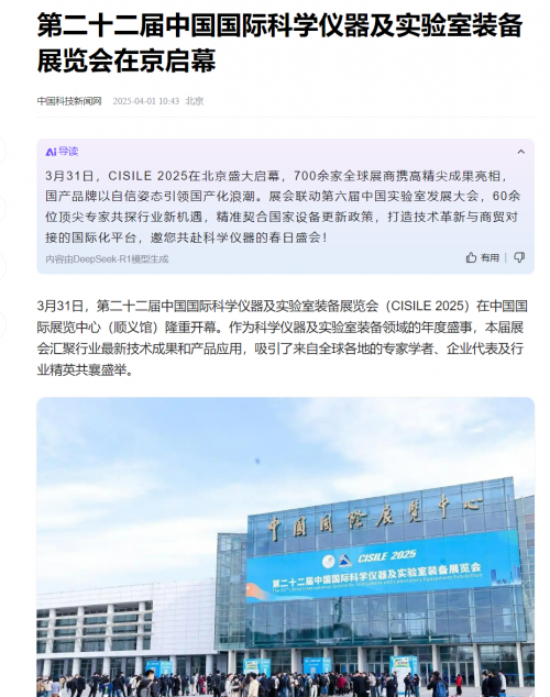 2025年4月2日,第二十二届中国国际科学仪器及实验室装备展览会(CISILE 2025)在中国国际展览中心(顺义馆)圆满收官!CISILE经商务部批准,由中国仪器仪表行业协会与世信国际会展集团联合主办,北京朗普展览有限公司承办,并得到中国机械工业联合会、中国出入境检验检疫协会等权威机构的大力支持。CISILE 2025展示面积30000平方米,参展企业661家,吸引前来参观交流专业观众50816人次,上千款新产品、新技术、新成果惊艳亮相。与CISILE 2025同期举办的第六届中国实验室发展大会(CLC 2025)设置了一场开幕式及主论坛、七场专题分论坛,60余名行业权威专家汇聚,3688位行业精英参会,共同探讨行业发展趋势、技术创新、安全管理等热点议题,为推动中国实验室行业的进步与发展贡献了宝贵的智慧与力量。