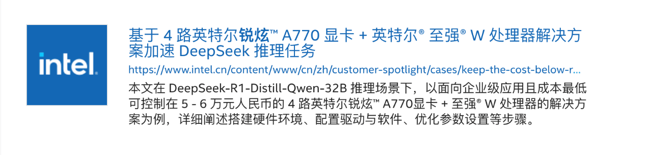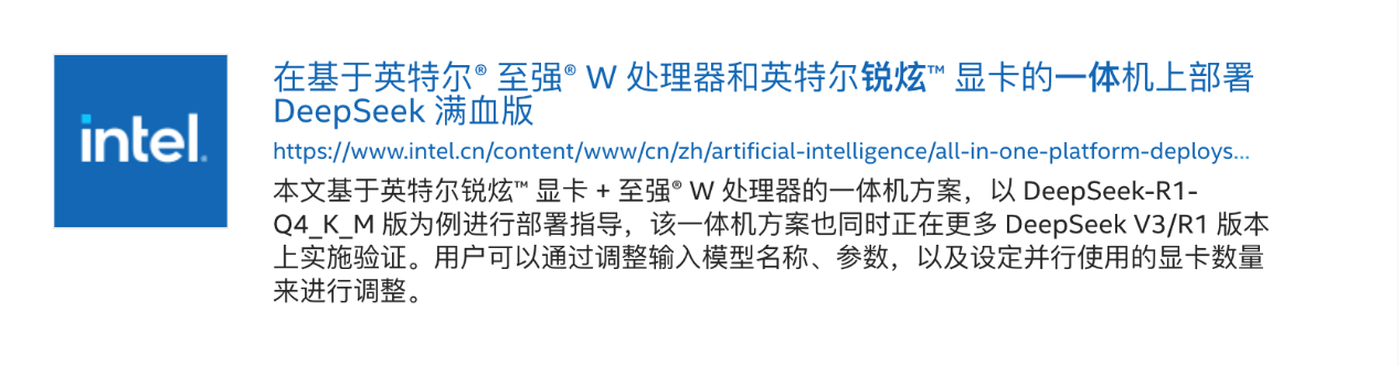 蒸馏版和满血版的部的部署指南,都可在英特尔官网搜索“锐炫一体机”获取。