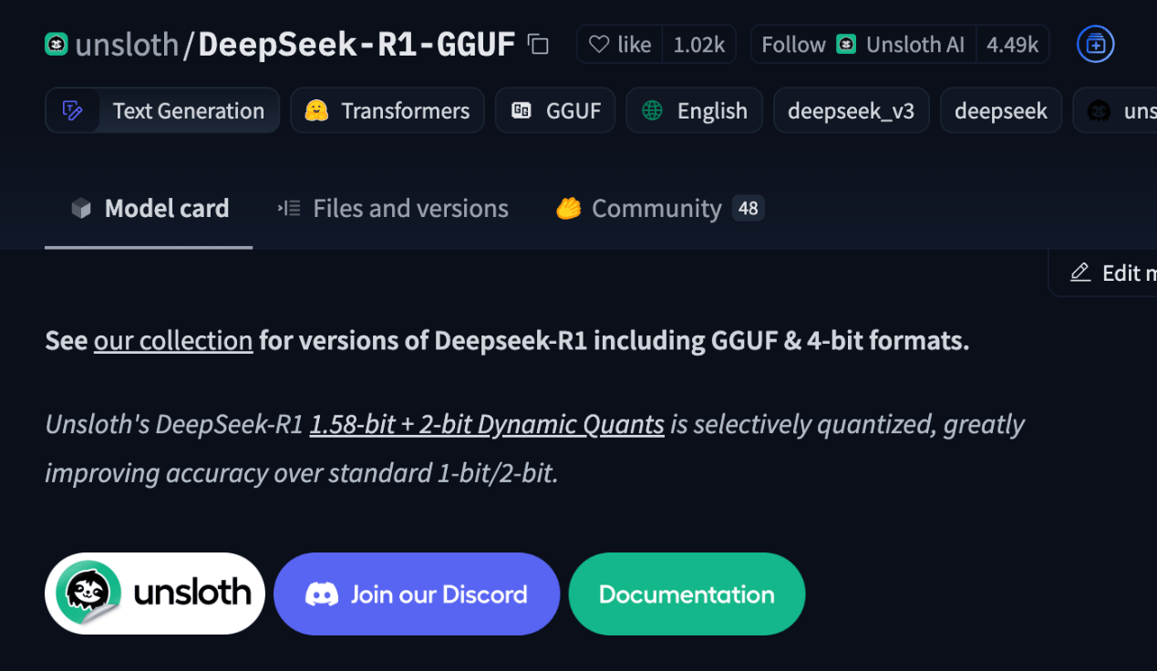 在这个框架中,推荐使用GGUF格式的模型,这里使用unsloth开源版本来说明。
