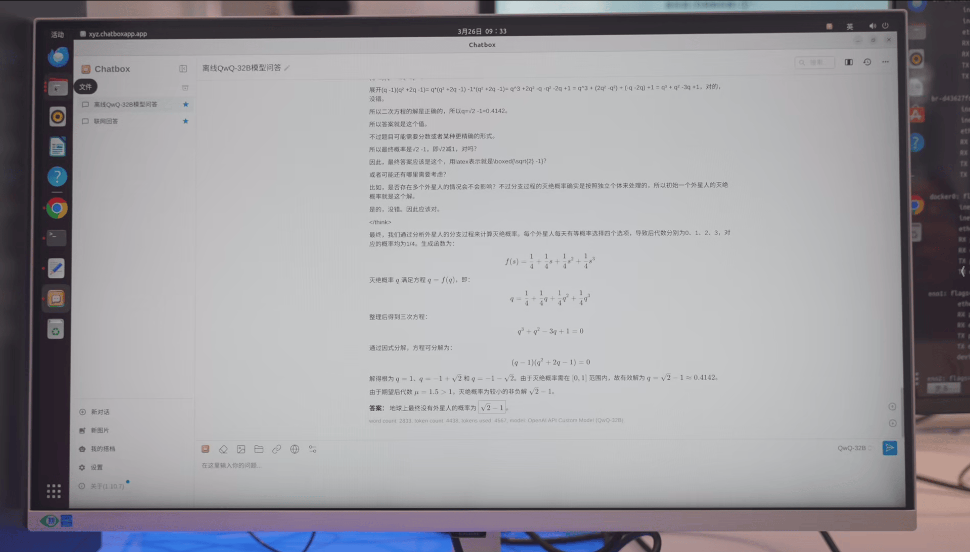 例如我们先用QwQ-32B离线状态下问了个经典题目: