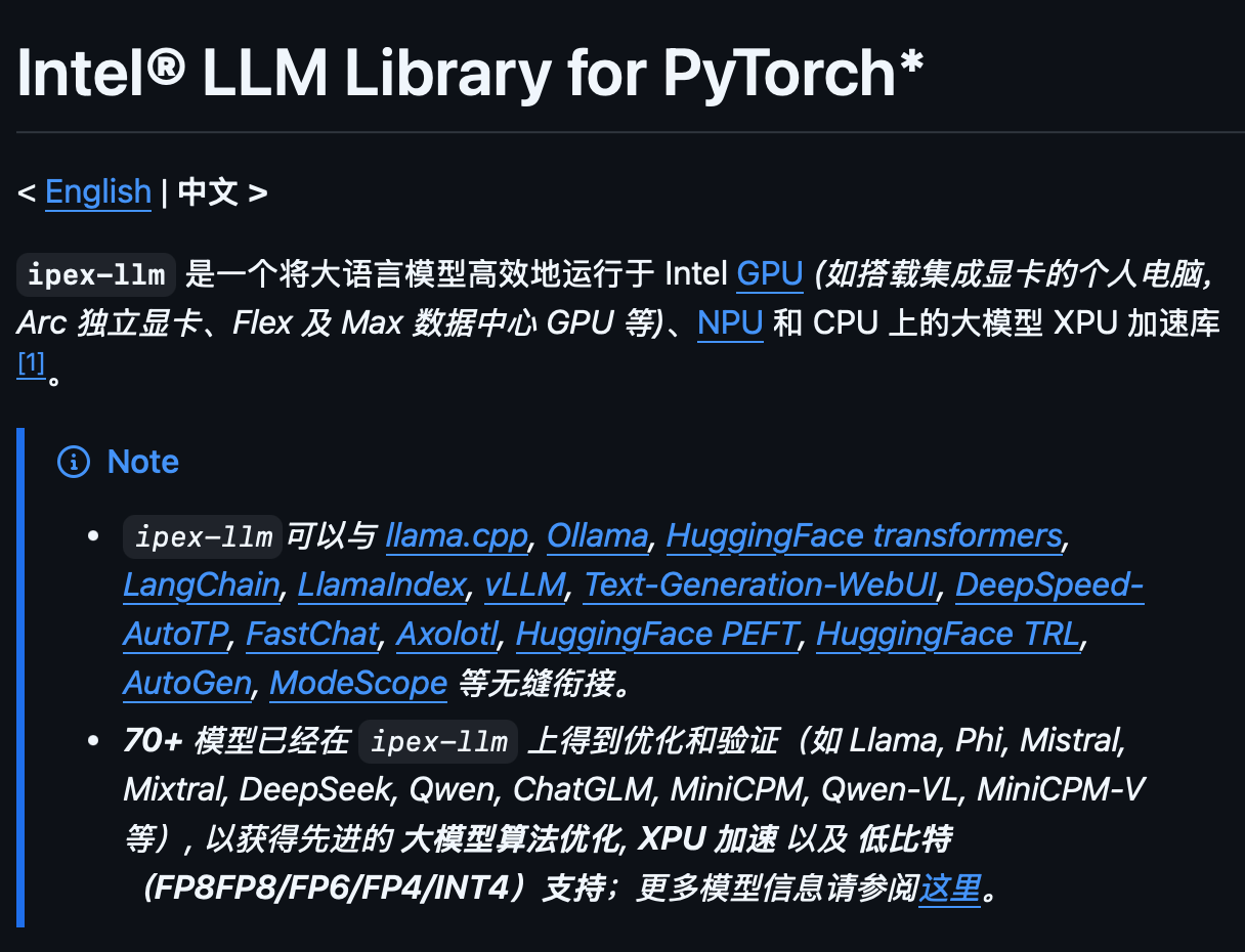 · IPEX-LLM:专门为大模型优化,支持DeepSeek、Qwen、Llama等主流开源模型,让CPU+GPU协同推理更高效。
