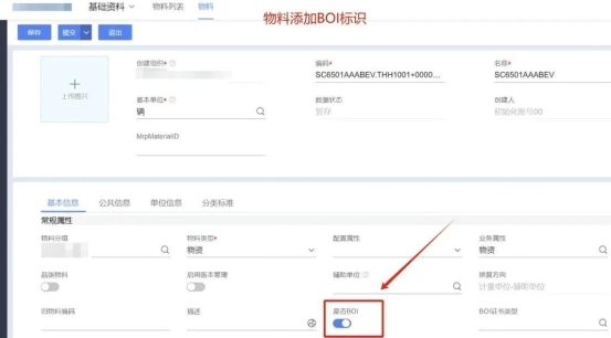物料主数据新增“BOI类型”字段(BOI物料/非BOI物料),总账科目新增“BOI核算维度”,后续所有业务数据均关联该维度,确保财务报表可按BOI /非BOI拆分。
