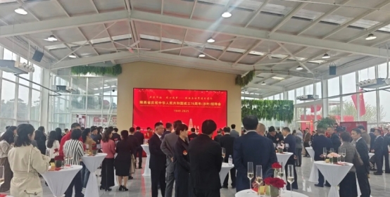 本次活动以“共庆华诞·同心筑梦——陕西与世界携手前行”为主题。现场,激昂的国歌奏响辉煌历程,深入的交流凝聚合作共识,真挚的祝福寄予美好愿景;中阮悠扬、皮影流转,与琳琅满目的陕西农特产品交织成一幅生动的文化画卷,深深吸引了各国嘉宾的目光。整场活动不仅是一场庆典,更是一扇全景窗口、一座友谊桥梁、一个合作平台,充分展现了陕西深度融入全球发展格局的坚定决心,有效联结了国内外优势资源,精准呼应了各方共享机遇、共创时代华章的愿景。来自全球多个国家的驻陕领事机构负责人、国际组织代表以及在陕外国商会、企业、专家和留学生代表,港澳台同胞等各界嘉宾齐聚一堂,共叙友谊,共谋发展,共庆新中国76载辉煌成就,共启陕西高水平对外开放新征程。
