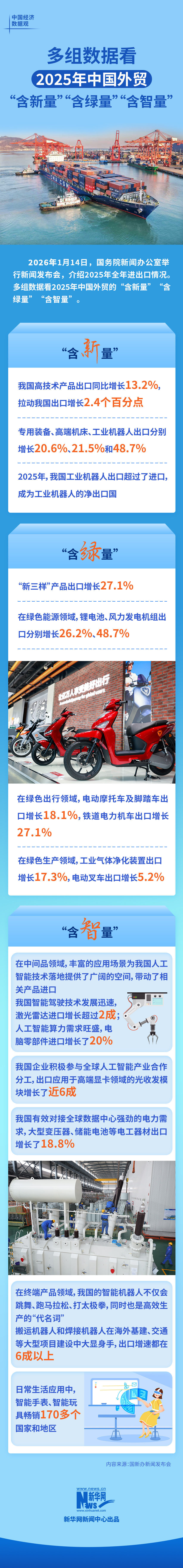 中国经济数据观丨多组数据看2025年中国外贸“含新量”“含绿量”“含智量