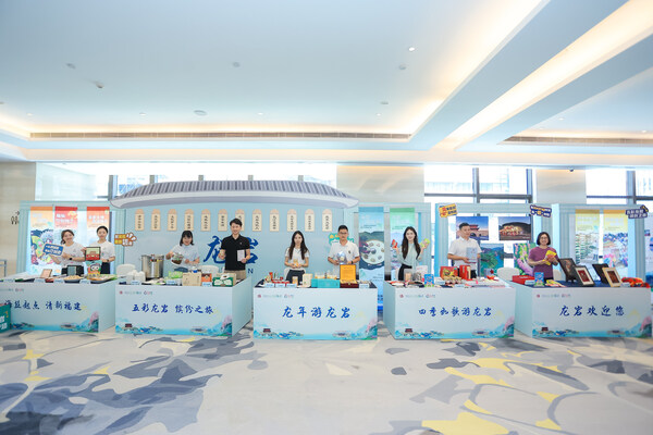 此外,现场以"五彩龙岩 缤纷之旅"为主题,特别打造了非遗文创区、美食茶歇区、签到打卡区等创意十足的氛围布置,将闽西客家木偶戏、长汀豆腐干、漳平水仙茶、龙岩咸酥花生、永定牛肉丸、雕版印刷技艺等龙岩特色非遗和美食融入其中,全方位展现龙岩文旅新容颜,为宾客带来全新感受。